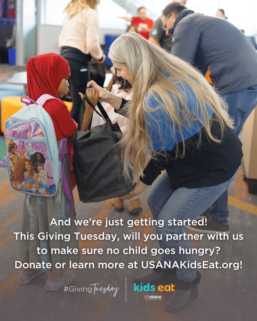 Today, people worldwide are coming together to support causes that are close to their hearts and make a positive impact in their communities. This Giving Tuesday, you have a remarkable opportunity to be part of a transformative initiative that is changing the lives of children in Utah by supporting our USANA Kids Eat programs including our weekend food bags and our Holiday Bag project!