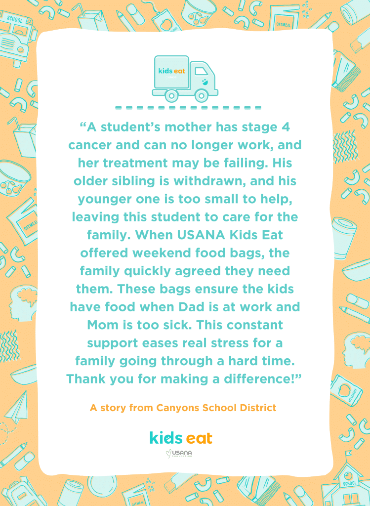 The heart of the USANA Kids Eat program lies in its dedication to feeding local students who are food insufficient at home.